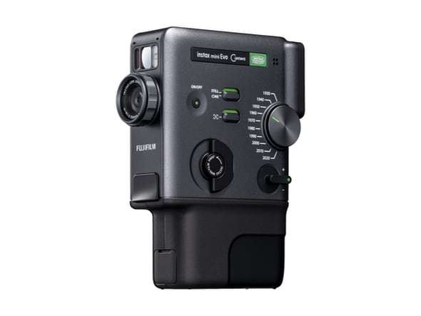 「instax mini Evo Cinema」は8mmフィルムカメラ「フジカシングル-8」を思わせる縦型スタイル
