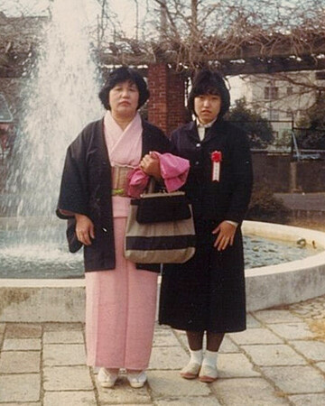 高校卒業の際に記念撮影する佐藤悦子さん(右)と、母の正子さん=1982年撮影(本人提供) 神戸市主催の阪神大震災追悼式典に、遺族代表として出席した介護士の佐藤悦子さん(62)=兵庫県加古川市。母の正子さん=当時(65)=が行方不明となり、31年たった現在も手掛かりは見つかっていない。「亡くなった人とは別に、行方不明者の存在も知ってほしい」と語る。