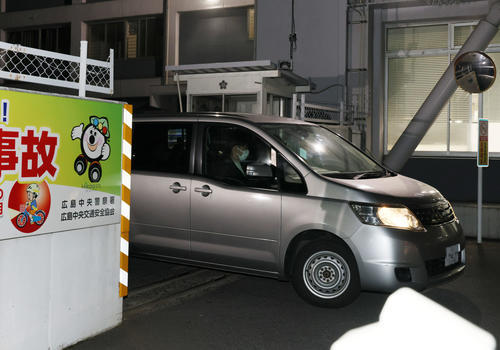 指定薬物のエトミデートを使用した疑いで逮捕された広島羽月隆太郎容疑者は、留置施設がある建物に護送される(撮影・加藤孝規)