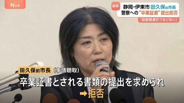 静岡県伊東市の田久保真紀前市長が、警察から求められていた卒業証書とされる書類の提出を拒否したことがわかりました。