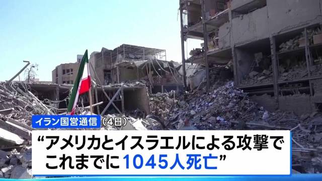 イランの国営通信は4日、アメリカとイスラエルによる攻撃で、これまでに1045人が死亡したと伝えました。先月28日の攻撃開始から5日目で死者が1000人を超えました。