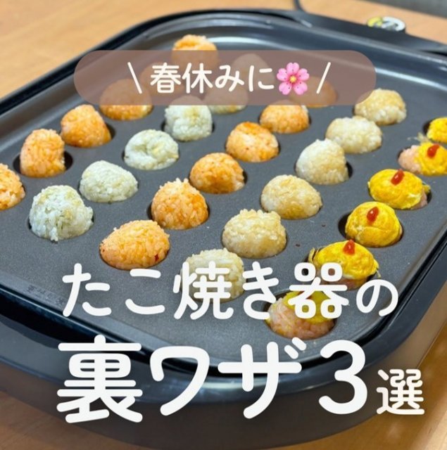 「春休みに たこ焼き器の裏ワザ3選」(画像提供:あいこさん @aiko_kurashi ) たこ焼き器を使った裏ワザがインスタグラムに投稿され、動画再生1823万回以上、20万「いいね!」が付く反響を巻き起こしている(27日午後4時時点)。