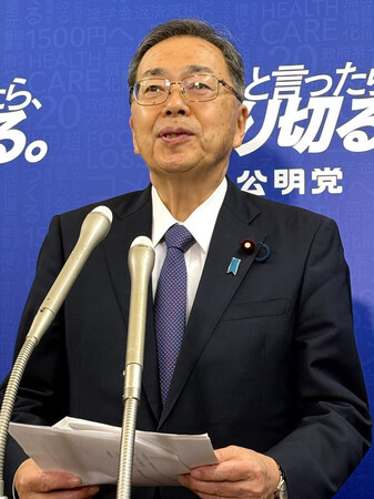 記者団の取材に応じる公明党の斉藤鉄夫代表=25日午前、国会内 政府は25日、台湾有事を安全保障関連法上の「存立危機事態」になり得るとした高市早苗首相の国会答弁に関連し、従来の政府見解は見直さない考えを示した。同日に閣議決定した答弁書で「存立危機事態に該当するかは、個別具体的な状況に即して持ち得る全情報を総合して客観的かつ合理的に判断する。政府見解は完全に維持しており、見直しや再検討が必要とは考えていない」と記した。