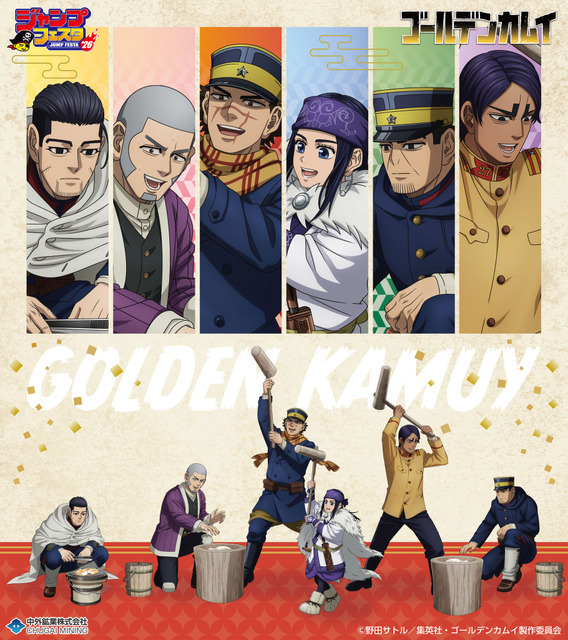 TVアニメ『ゴールデンカムイ』より、杉元佐一やアシ(リ)パによる“餅つき”がテーマの新作グッズが登場。2025年12月20日・21日に開催される「ジャンプフェスタ2026」にて先行販売が行われる。