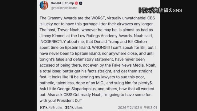 ¤³¤ì¤ËÂФ·¥È¥é¥ó¥×»á¤Ï2Æü¡¢¼«¿È¤ÎSNS¤Ç¡¢¥°¥é¥ß¡¼¾Þ¤Î¼ø¾Þ¼°¤Ë¤Ä¤¤¤Æ¡ÖºÇ°¤Ç¸«¤é¤ì¤¿¤â¤Î¤Ç¤Ï¤Ê¤¤¡×¤È¤·¤¿¤¦¤¨¤Ç¡¢¡Ö¤´¤ß¡×¤ÈÈãȽ¤·¤Þ¤·¤¿¡£
