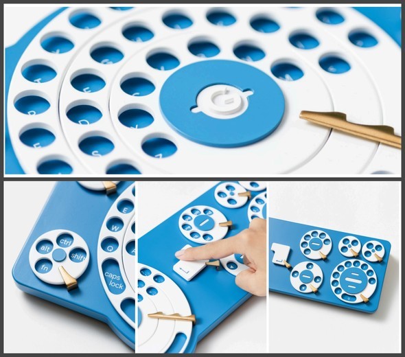 発表されたダイヤル式キーボードは、歴史的に親しまれてきた回転操作を採用しながらも、新しい体験を提供する設計となっている。円形デザインに配置された穴に指を差し込み、ダイヤルを回転させることで文字を入力する仕組み。入力時に響くジーコジーコという音も特徴の1つだ。