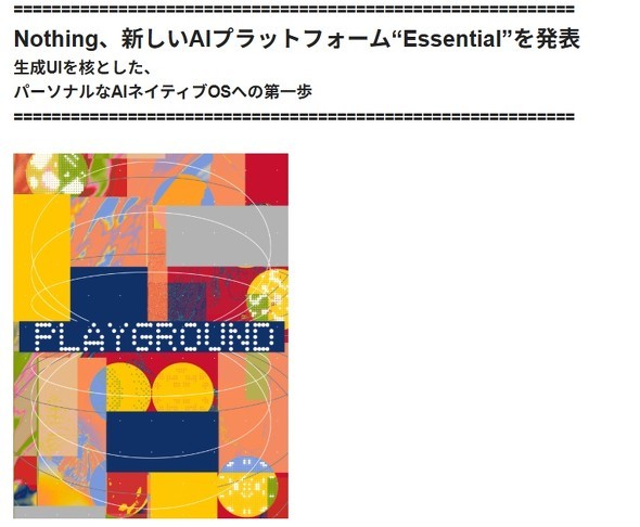 同社は、従来のスマートフォンOSがビジネスの都合を優先し、ユーザーを硬直した仕組みに縛ってきたと批判。Essentialを通じてその枠を解き放ち、テクノロジーをよりパーソナルな存在に変えたい考えを示した。NothingのCEOカール・ペイ氏は「私たちはEssentialによって、旧来のエリート主義的なシステムを崩し始める。未来のソフトウェアは制限のないアクセス、多様な人々による協働、そしてハイパーパーソナライゼーションが基本になる」と述べている。