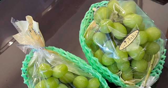 投稿したのは、美容室を経営している竹山康幸(@oyajichappy)さん。「ブドウ農家さんが持ってきてくれた」「指みたいなのバリうまい」と添え、テーブルに並んだブドウの写真を公開しています。