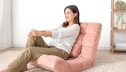 長時間座ることになる映画鑑賞やゲームプレイといった用途はもちろん、腰にしっかり当てて気軽にストレッチもできる。なお、一般的な座椅子では骨盤が傾斜して姿勢が崩れやすいが、「腰ピタ座椅子」なら正しい姿勢をキープしやすいので、長時間座っても疲れにくい。