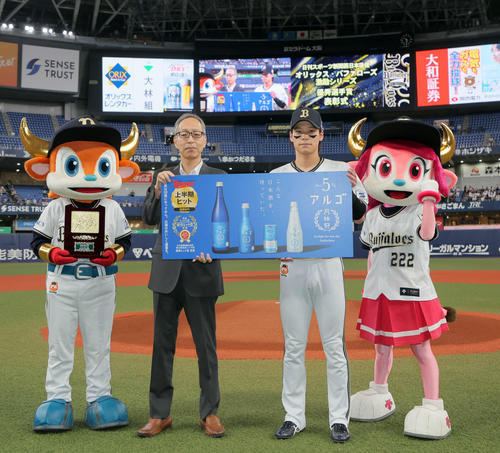 日刊スポーツ後援「オリックス・バファローズ激励シリーズ」(8月26日からの主催試合)の表彰が1日、京セラドーム大阪で行われた。最優秀選手賞の中川圭太内野手(29)に協賛社の月桂冠、大橋正樹取締役 東日本営業部長から副賞の「月桂冠アルゴ」1年分、日刊スポーツから表彰盾が贈られた。