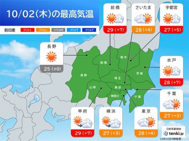 º£Æü2Æü¤Ï´ØÅì¤Ç¤ÏÀ²¤ì¤Æµ¤²¹¤¬¾å¤¬¤ê¡¢ÅìµþÅÔ¿´¤Ï28¡î¤ÈÆüÃæ¤Ï´À¤Ð¤à¤¯¤é¤¤¤ÎÍÛµ¤¤Ë¤Ê¤ë¤Ç¤·¤ç¤¦¡£Á°¶¶»Ô¤Ç¤Ï29¡î¤È¿¿²ÆÆü¤ËÇ÷¤ë½ë¤µ¤È¤Ê¤ë¸«¹þ¤ß¤Ç¤¹¡£¤³¤ÎÀè1½µ´Ö¤âºÇ¹âµ¤²¹¤Ïʿǯ¤è¤ê¹â¤¤Æü¤¬Â¿¤¯¡¢ÆüÃæ¤Ï¤Þ¤ÀȾµ¤Î½ÐÈÖ¤¬Â¿¤¯¤Ê¤ê¤½¤¦¤Ç¤¹¡£