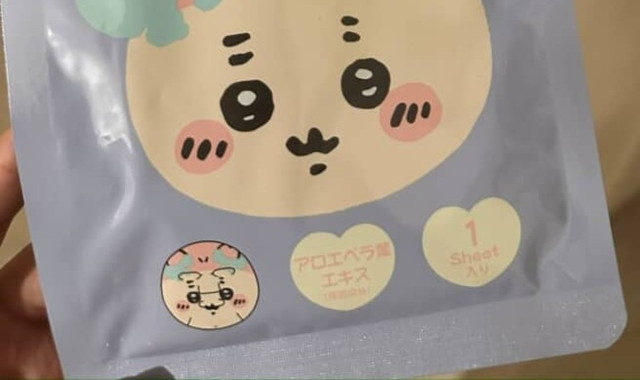 ある日ちいかわのフェイスマスクを手に入れたacoさん。美容液がしみ込んだフェイスマスクに『ちいかわ』に登場する「カニちゃん(古本屋)」の顔が印刷されているこちらの商品。かわいらしい姿に変身できて、お肌もツヤツヤになるなんて一石二鳥!