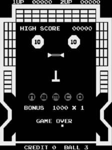 当時ナムコが初めて自社開発したタイトルであり、同社のゲーム開発史において大きな節目となった記念碑的作品でもあります。画面上部に配置されたブロックを弾き飛ばす爽快感と、ピンボールのような得点ギミックが組み合わさったルールは、後のゲームデザインにも大きな影響を与えました。