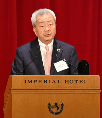 日米財界人会議であいさつする日米経済協議会の澤田純会長=2日午前、東京都千代田区 日本と米国の経営者らが、貿易・投資の将来像など両国の経済関係について幅広く議論する日米財界人会議が2日、東京都内で開幕した。トランプ米政権の高関税政策を機に保護主義的な動きが世界で広がる中、日本側議長の澤田純・日米経済協議会会長(NTT会長)は「私たちは予測困難な世界に直面しているが、日米が企業レベルで対話を強化することが必要だ」と呼び掛けた。