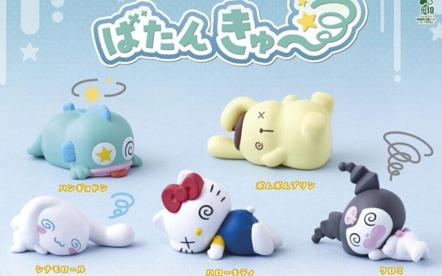 「サンリオキャラクターズ ばたんきゅ〜」は、サンリオキャラクターズのばたんきゅ〜〜〜とした様子のカプセルトイ。普段あまり見られないコミカルな表情がポイントです。