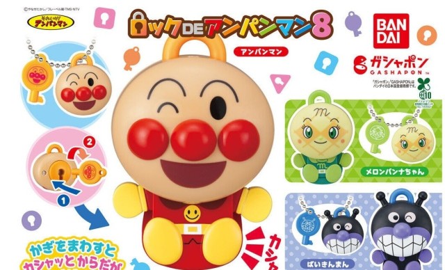「それいけ!アンパンマン ロックDEアンパンマン8」は、鍵をさしてまわすと、カシャっとからだが飛び出す、何度も鍵を開けたくなるアンパンマンたちのマスコット。
