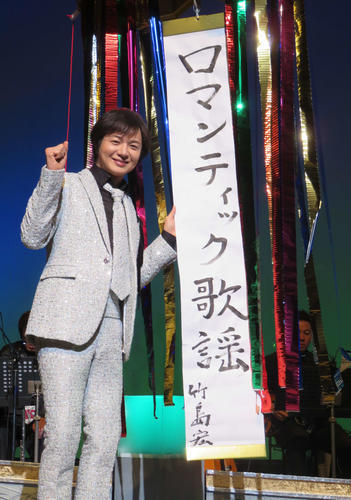 開演前の取材では自身で考案したというキャッチフレーズ「ロマンティック歌謡」を披露。「来年で25周年ですが、これまでキャッチフレーズをいただいたことがない。年齢を重ねてきて、寂しさを感じたのと『竹島宏ってどういう人』と聞かれた時に困った。『歌謡曲歌手』では広すぎるから「ロマンティック歌謡」。ファンの人が『宏君の歌を聞くと乙女にかえれる』と言ってくれるし、今日から『ロマンティック歌謡の竹島宏』です」とアピールした。