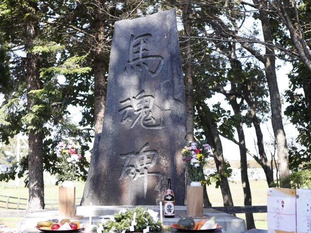 これは、毎年10月に行われる同生産振興会の伝統行事。馬魂慰霊碑の周辺には、かつてこの場所に存在していた日高軽種馬農協門別種馬場に繋養されていた名馬の墓碑なども設置されている。