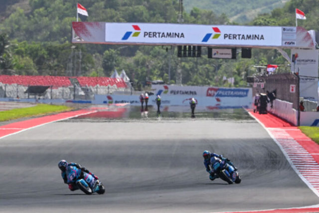 Moto2:ダニエル・オルガド(CFMOTO Power Electronics Aspar Team)、エイドリアン・ウエルタス(Italtrans Racing Team)/2025MotoGP第18戦インドネシアGP 10月4日、2025年MotoGP第18戦インドネシアGP Moto2クラスの予選がマンダリカ・インターナショナル・ストリート・サーキットで行われ、ディオゴ・モレイラ(Italtrans Racing Team)がポールポジションを獲得した。