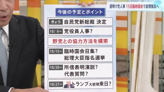 きょう総裁が決まり、週明けにも高市新総裁は党の幹事長をはじめとした役員人事に着手する見込みです。15日には臨時国会が召集されて総理大臣指名選挙が行われる見通しですが、この10日間が非常に重要になってきます。