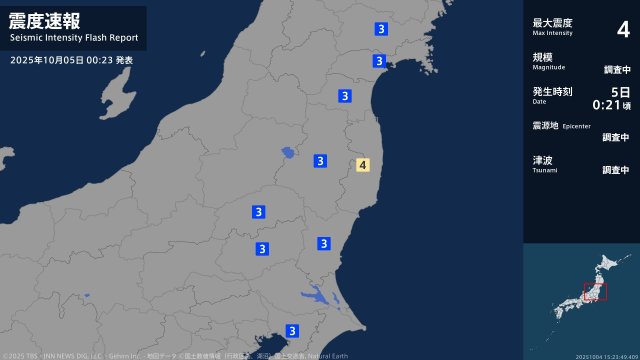 5日午前0時21分ごろ、福島県で最大震度4を観測するやや強い地震がありました。