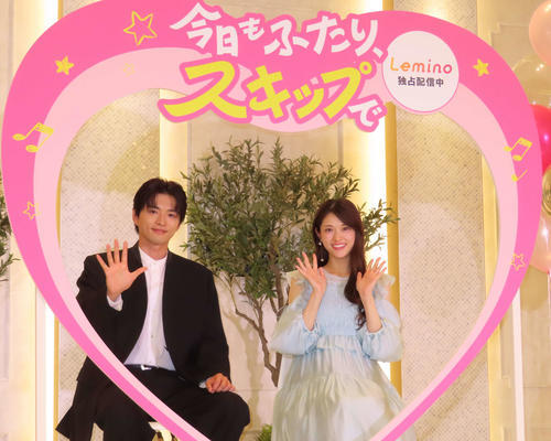松村沙友理(33)白洲迅(32)が6日、都内で、Leminoオリジナルドラマ「今日もふたり、スキップで」の配信記念イベントに出席した。