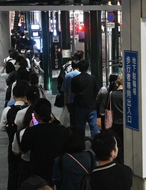 夕刻に帰宅ラッシュを迎えても、運転は再開しない。梶が谷駅の隣にある溝の口駅周辺では、バスを待つ人が長蛇の列を作った。東京都世田谷区の自宅へ帰宅途中だった保育士の女性(32)は「普段は電車で10分で着くのに、バスを乗り継いで1時間以上かかりそう」とため息をついた。