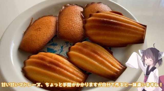 こんがり良い色になったところでマドレーヌの完成! 周りはカリっと、中はしっとりした生地に仕上がりました。甘さが美味しいマドレーヌを作ってみたくなったという方は、動画を参考にお試しください。