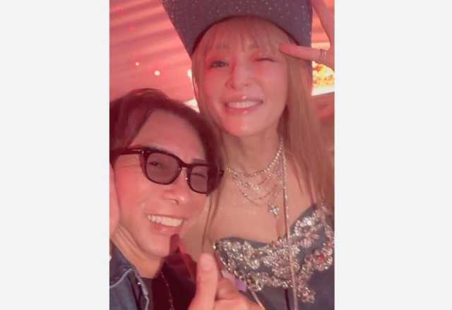 続く投稿で、浜崎あゆみさんは「エイベックス」の松浦勝人会長との2ショット動画をアップし「マサから誕プレもらったけど、こわくて着けれまへーん!笑」と、綴っています。