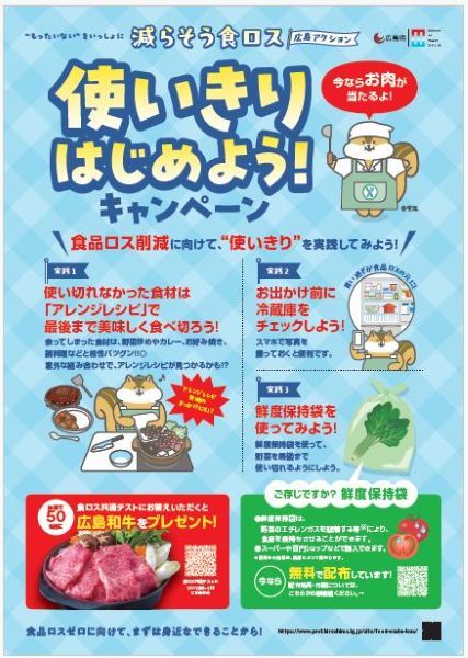 WEBキャンペーンの「食ロス共通テスト」は、参加県民を対象に抽選で50人に広島和牛が当たるキャンペーン。食品ロスについて楽しく学ぶことができる。