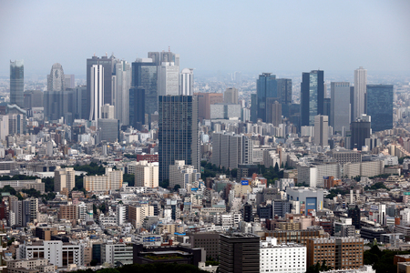 都心の高層ビル群=東京都内(EPA時事) 内閣府が7日発表した8月の景気動向指数(2020年=100)速報値は、景気の現状を示す一致指数が113.4と前月比0.7ポイント低下し、2カ月連続で悪化した。基調判断は「下げ止まりを示している」に据え置いた。