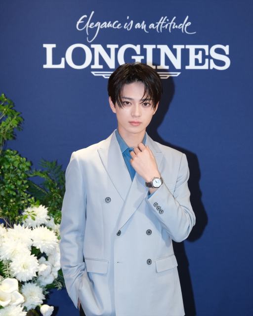 「ロンジン マスターコレクション」を着けさせていただいているのですが、シルバーの盤面に青の長針と短針ということで、シャツは青色でシルバーのジャケットにして、時計のベルトが黒っぽいシックなカラーなのでパンツを黒にする形で全身との統一感を出したのがポイントです。