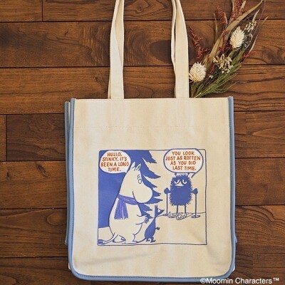 ムーミンとスティンキーのイラストが描かれた、縦長フォルムのトートバッグです。