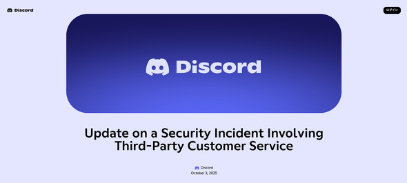 Discordはこの件について、10月3日に初めて情報漏えいの可能性を公表。委託先業者が運営するカスタマーサポートシステムが、Discordへの身代金要求を目的に攻撃を受けた。これにより、同社のTrust & Safetyチームやカスタマーサポートと連絡を取ったことがある一部ユーザーの個人情報が流出した可能性がある。Discord本体のシステムには侵入されておらず、影響は外部委託先に限られるという。