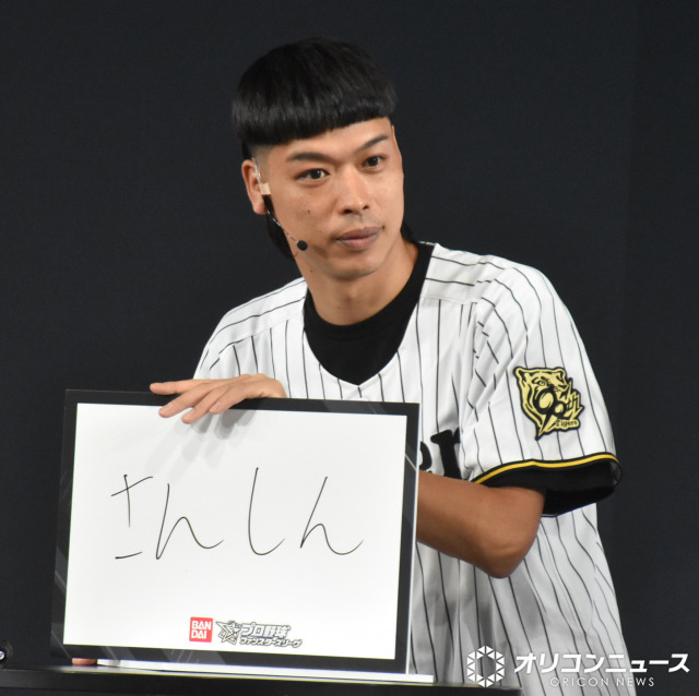 【写真】カードさながら…ピッチング姿をみせるエース 冒頭のあいさつでエースは「野球大好き、バッテリィズにとって最高の仕事でございます。ありがとうございます!」と笑顔。イベントでは、とある試合を使って、先に展開を予測するゲームを実施。エースは「さんしん」と書き、「すみません。漢字を書けなくて…」と苦笑い。里崎は「『三振』書けへんの!」と驚くと、エースは「『三』は書けるんですけど『振』はごめんなさい」と苦笑いを浮かべていた。里崎は「問題の制作者の心理も読み解く」というキャッチャーらしい予測をし、見事に正解を導き出していた。