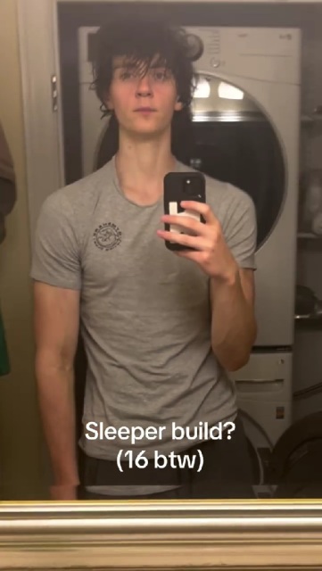 動画には「Sleeper build?(スリーパービルド?)」とテロップが出ています。これは一見すると細身で目立たない体形に見えるものの、服を脱ぐと鍛え抜かれた肉体が現れるという意味で、近年SNSで広まっている表現です。