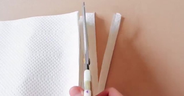 まずは、キッチンペーパーをハサミで細かくカットして水に浸します。そうしたら両手でギュッと絞って水を押し出しました。ここで、キッチンペーパーをよくほぐしておくのがうまくいくポイントなのだそうです。