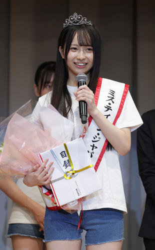 今回から審査員としても参加した新川優愛(31)からタスキ、目録、花束とティアラを贈呈された。「信じられないくらいうれしい」と声を震わせた。「今までダイエットとかいろんなことを頑張ってきて、良かったなと思います。支えてくれた人にも感謝を伝えたいです」と絞り出すように話すと、「これから自分らしく笑顔で頑張っていきたいです」と意気込んだ。 自己PRでは「常に明るく元気で、人と接するのが大好き。あの子といると元気をもらえると言ってもらえるのが喜びです」と訴えた。「元気過ぎて友だちから突っ込まれることもある」と明かしたが、「それも私の個性です」とポジティブに捉えた。