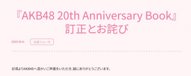 AKB48、20周年のメモリアルブックに掲載ミス 手書きメッセージの入れ替わりが判明し謝罪