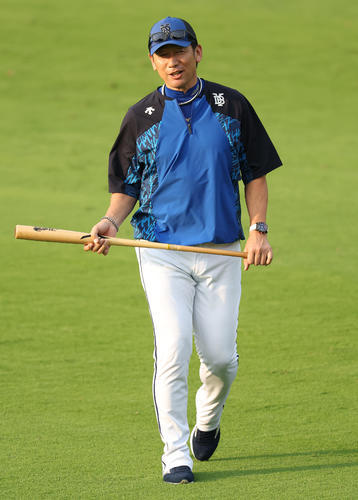 笑顔を見せながら外野を歩く三浦監督(撮影・上田博志)DeNA三浦監督が完全アウェーの甲子園での戦いを思い描いた。