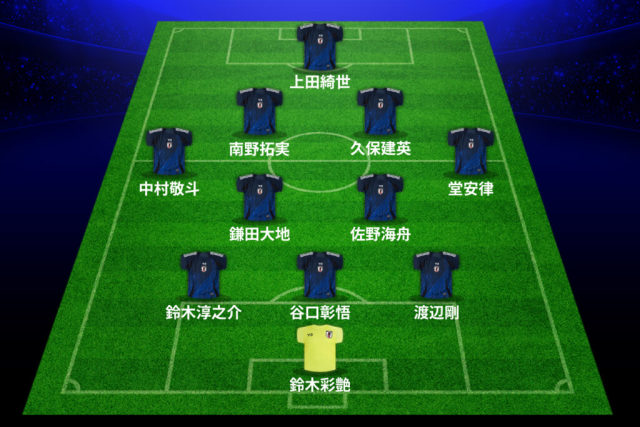 日本代表のスターティングメンバー、および控えメンバーは以下の通り。