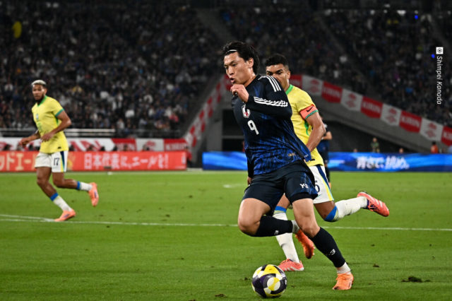 日本代表FW町野修斗 [写真]=金田慎平 日本代表は14日、キリンチャレンジカップ2025でブラジル代表と対戦した。前半2点のビハインドとなった中、54分に南野拓実が追撃弾を決めて1点を返す。ともに伊東純也のお膳立てから62分に中村敬斗が同点ゴール、そして71分に上田綺世が逆転ゴールを決め、対ブラジル歴史的初勝利を掴んだ。