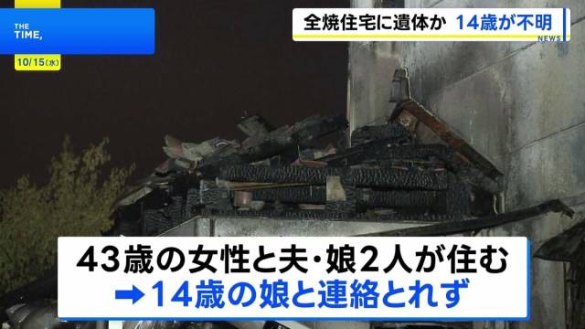 警察によりますと、この家には43歳の女性と夫、娘2人の家族4人が住んでいましたが、そのうち14歳の娘と連絡がとれていないということです。