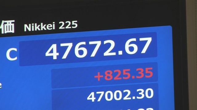 きょうの東京株式市場で日経平均株価は一時900円以上の大幅な値上がりとなり、4万7000円台を回復しました。結局、終値は825円高い4万7672円で取引を終えています。