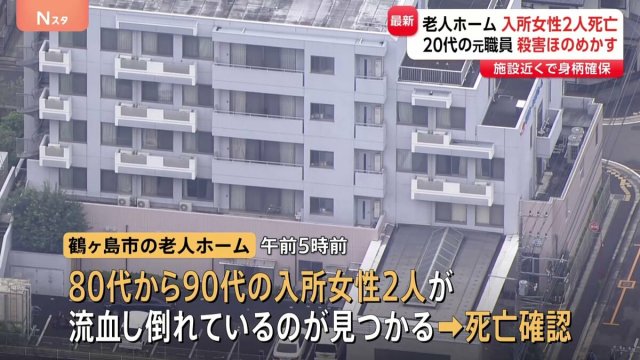 午前5時前、鶴ヶ島市の老人ホームで80代から90代の入所者の女性2人が血を流した状態で倒れているのが見つかり、その後、死亡が確認されました。