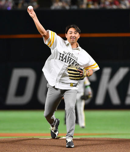 背番号「1」をつけた現役時代のホークスのユニホーム姿で登場。ワインドアップで投じ、ノーバウンド投球を披露した。場内からは大きな拍手が送られ「マウンドにまず上がらせてもらうことがない。あそこから見た景色はすごかったですね。この中で(プレーを)やらせてもらってたんだと思うと、自分が幸せだなって思いました」と話した。
