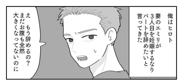 エミリが妊娠してからは食事も簡単なメニューばかりだし、掃除も行き届いていない。つらそうに横になるたび、大ゲサだなと思って呆れていた。同僚の嫁さんは子どもが3人いて、しっかりフルタイムで働いているというのに……。