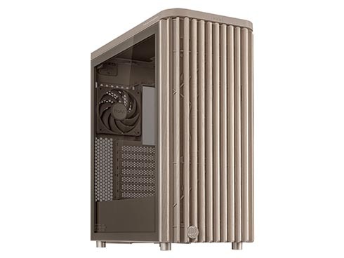 本体前面に木製のフロントグリルを備えるミドルタワー型PCケース。製品仕様は従来モデルと同様で、ATXマザーボードまでの装着に対応し最大5基(前面2基、上面2基、背面1基)のPWMファンを装着可能(標準付属ファンは3基)。