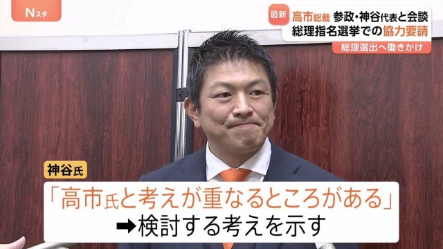 会談後、神谷氏は「高市氏と考えが重なるところがある」と述べ、検討する考えを示しました。