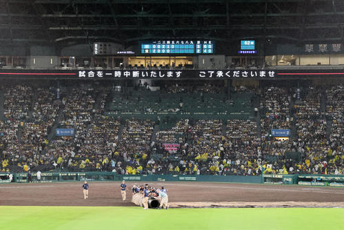 5回裏の阪神の攻撃前に、強い雨のため試合が中断された。